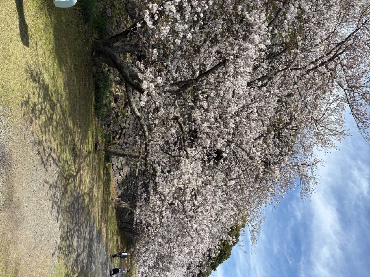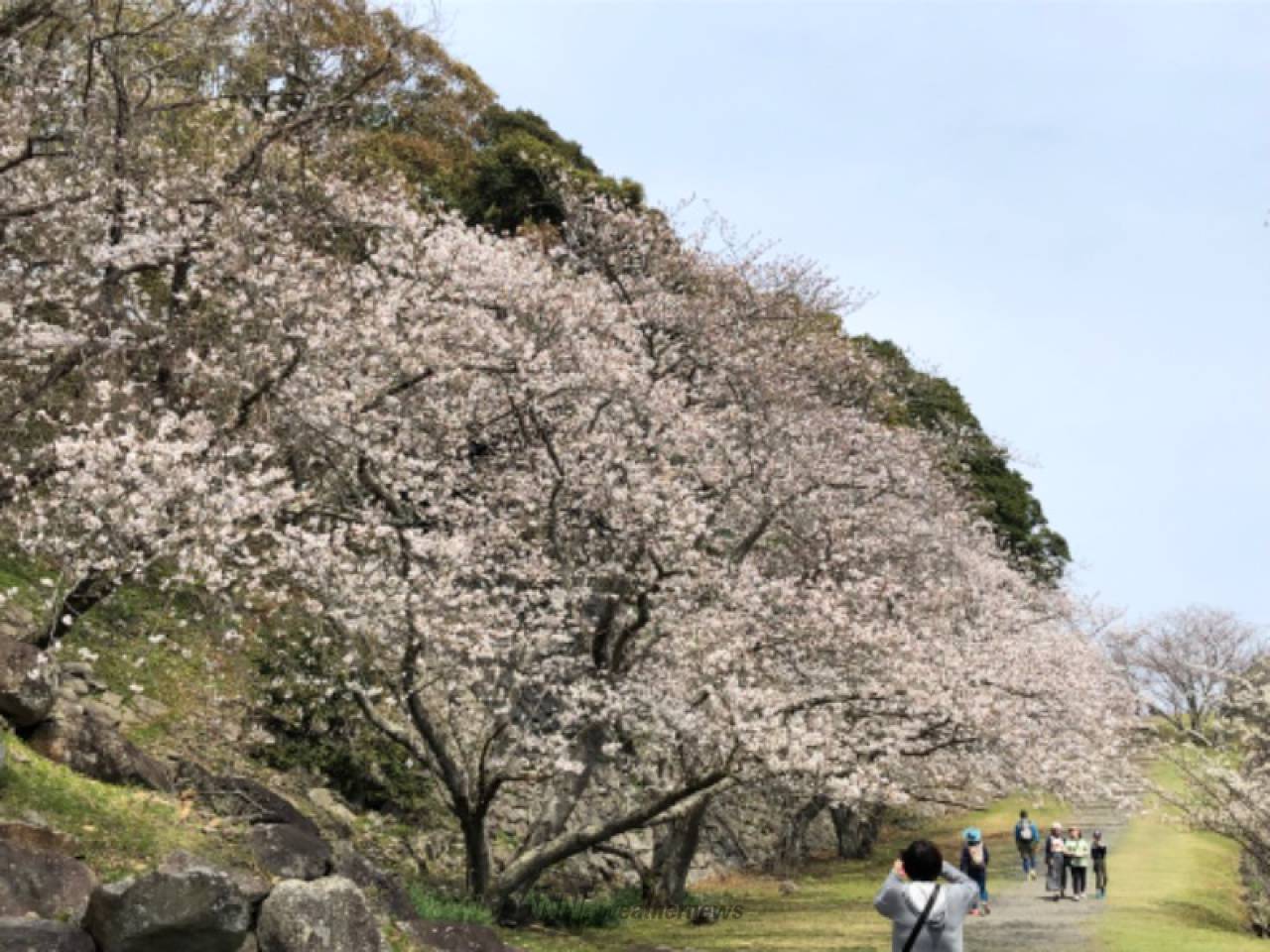 城跡の入口にあたる大手口から登城坂にかけて桜並木が続く。登城坂下には芝生広場が広がり絶好のお花見スポットとなっている。また本丸跡は周囲を桜が取り囲んでおり、天守台跡からは眼下に広がる二の丸広場等の桜を一望できる。