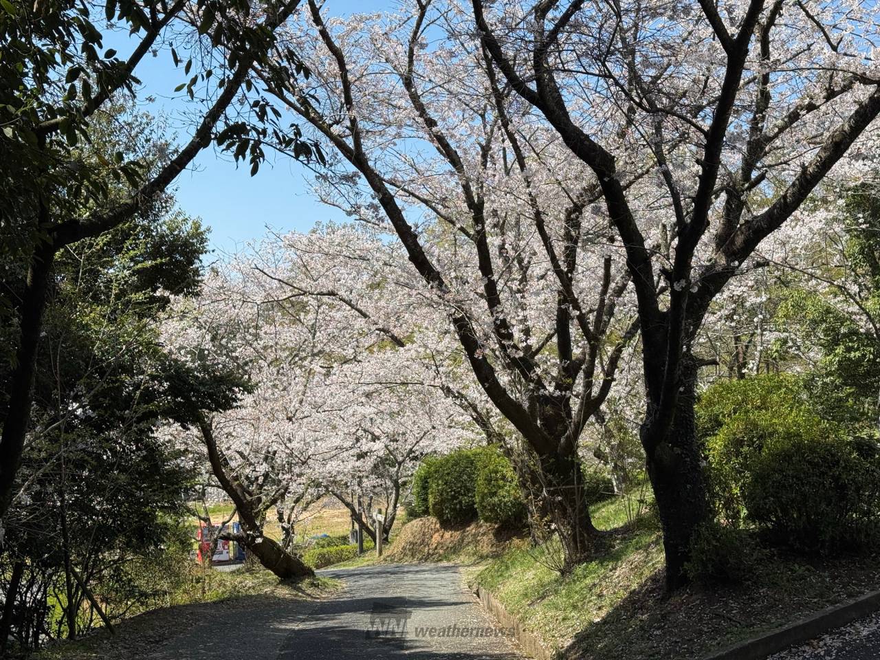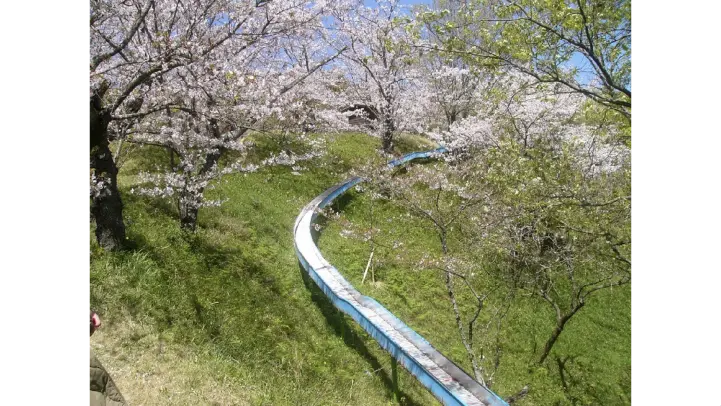 小岱山山麓の広大な公園に、約1500本の桜が咲き誇ります。全長130mのスーパースライダーなど遊具も充実し、展望所からは遠く島原を見ることができます。
