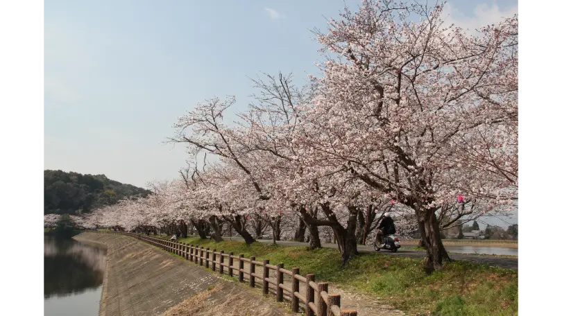 県下有数の桜の名所として知られる立岡自然公園は、立岡池と花園池の両池を中心に約2000本の桜が植栽されており、花見シーズンには市内外からの多くの花見客が訪れます。