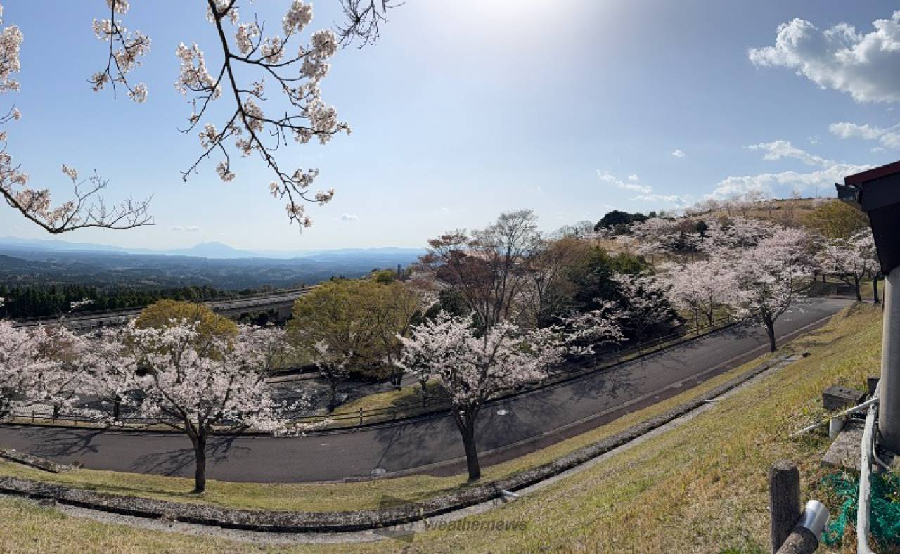 標高680mから錦江湾、桜島、間近に霧島連山を望む絶景の中、500本の桜がとても美しいです。