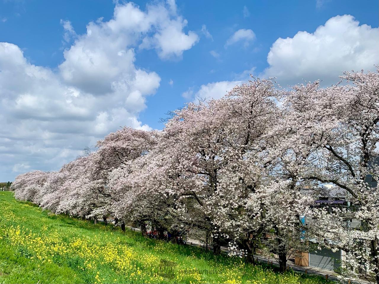 最寄り駅から徒歩5分、アクセス抜群!平成2年に「さくら名所100選」に選定されました。約2kmにわたって500本程のソメイヨシノが咲き誇り、手に取る高さで桜の花と一緒に写真が撮れます。江戸時代から場所が変わった今も、変わらず多くの人を魅了している熊谷桜堤です。