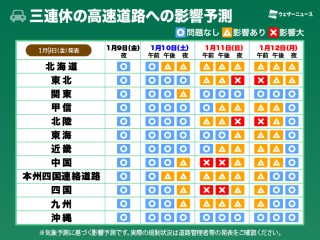 スキー場(天気・積雪)ニュース 非常に強い寒気が南下 雪雲が発達し激しい雪や猛吹雪に 2026.01.11 11:11 三連休は大雪や猛吹雪のおそれ 交通機関への影響予測(1月9日更新) 2026.01.09 15:30 スキー場での事故はなぜ起きる? 安全に楽しく滑るための10のルール 2026.01.09 05:00 気象庁1か月予報 西日本や東日本の太平洋側は少雨傾向 乾燥に注意 2026.01.08 15:32 ニュースをもっと見る