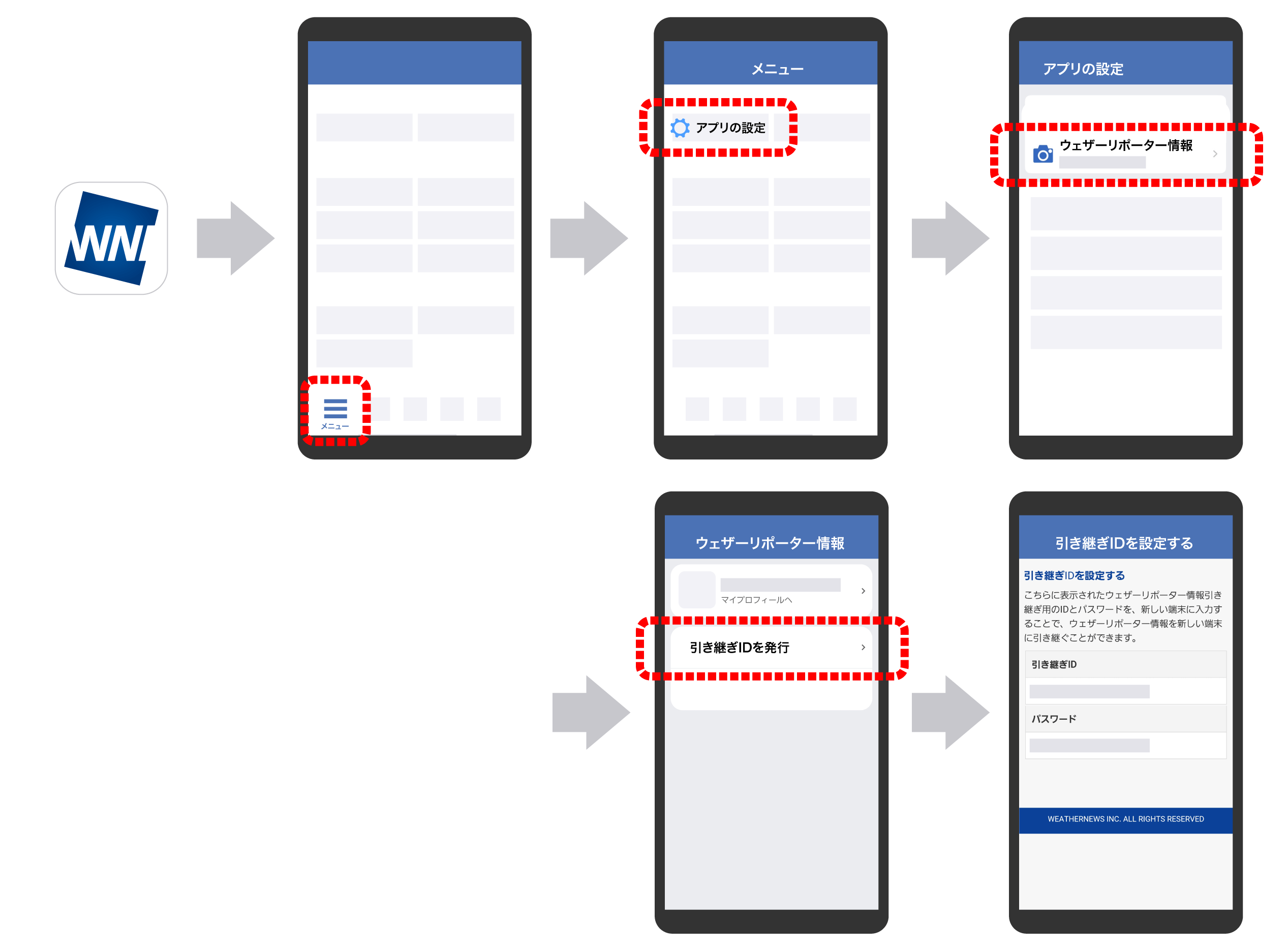 移行手続きにより、ウェザーリポーター情報がリセットされてしまう場合があります。