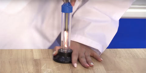 圧縮発火装置を使って、ものの発火点について学んでもらいます。ものによって発火点は違うのですが、今回は綿や鉛筆の削りカスで火をおこすことにチャレンジしてもらいます。