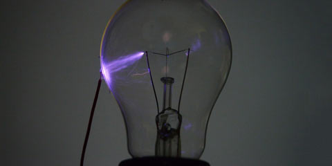 電球と圧電素子という瞬間的に電気を起こす装置を使い、雷雲と地面の関係を、フィラメントと手のひらの間に発生させます。雷が発生する仕組みを観察しましょう。