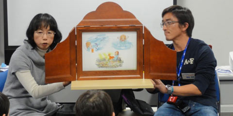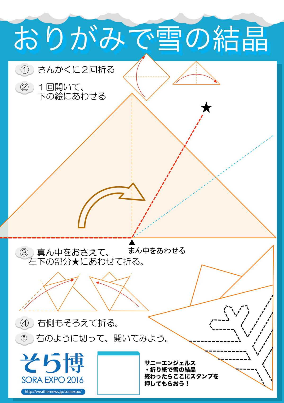 ママさん気象予報士による天気の紙芝居を行います。また、折り紙を使った簡単な工作(雪の結晶作り)も行います。