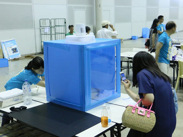 当日はペットボトルに切り込みを入れ、この台風発生装置も工作しました。