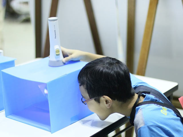 実験の方法は簡単です。水が入ったペットボトルに懐中電灯の光をあて、反射した光を黒い画用紙に写すだけです。