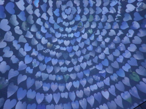 そら博 2015開催中にウェザーリポーターの皆さんから届いた20,825通のリポート写真をハート型に切り取り、会場に設置したそらハート360特設ドームにリアルタイムで投影しました。