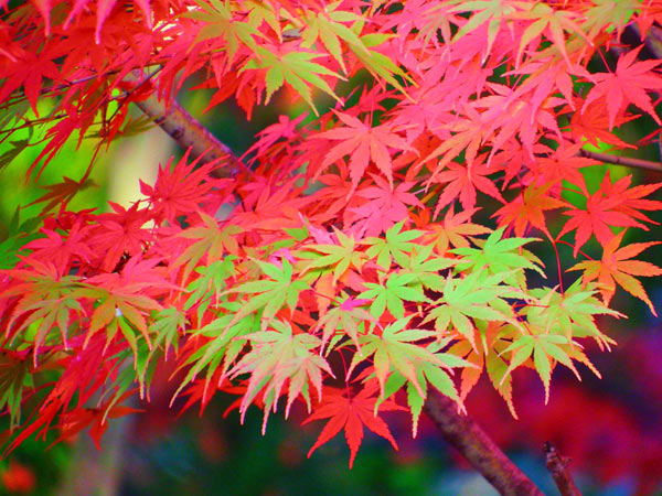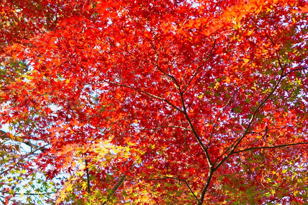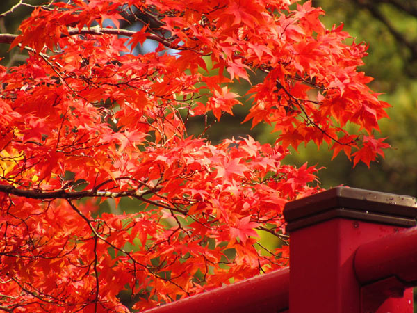 「紅葉が真っ赤できれいです。空気もひんやりして気持ちのいい天気です」