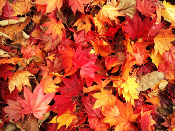 「たぶん天神山で赤くなったのは、このハウチワカエデだけ? 紅い絨毯。白雲木(ハクウンボク)の茶色の葉っぱも一緒に」