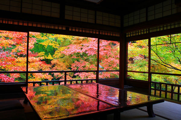 「瑠璃光院、テーブル鏡紅葉が凄くキレイです! 人が居ないわけではなく、みんな下がって撮っているのです」