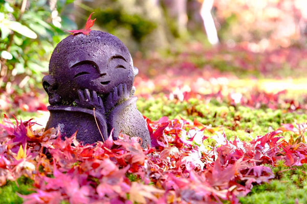 「圓光寺のお庭の人気者のお地蔵さま。たくさんの人に撮られて少しはにかんだ笑顔が可愛い!」